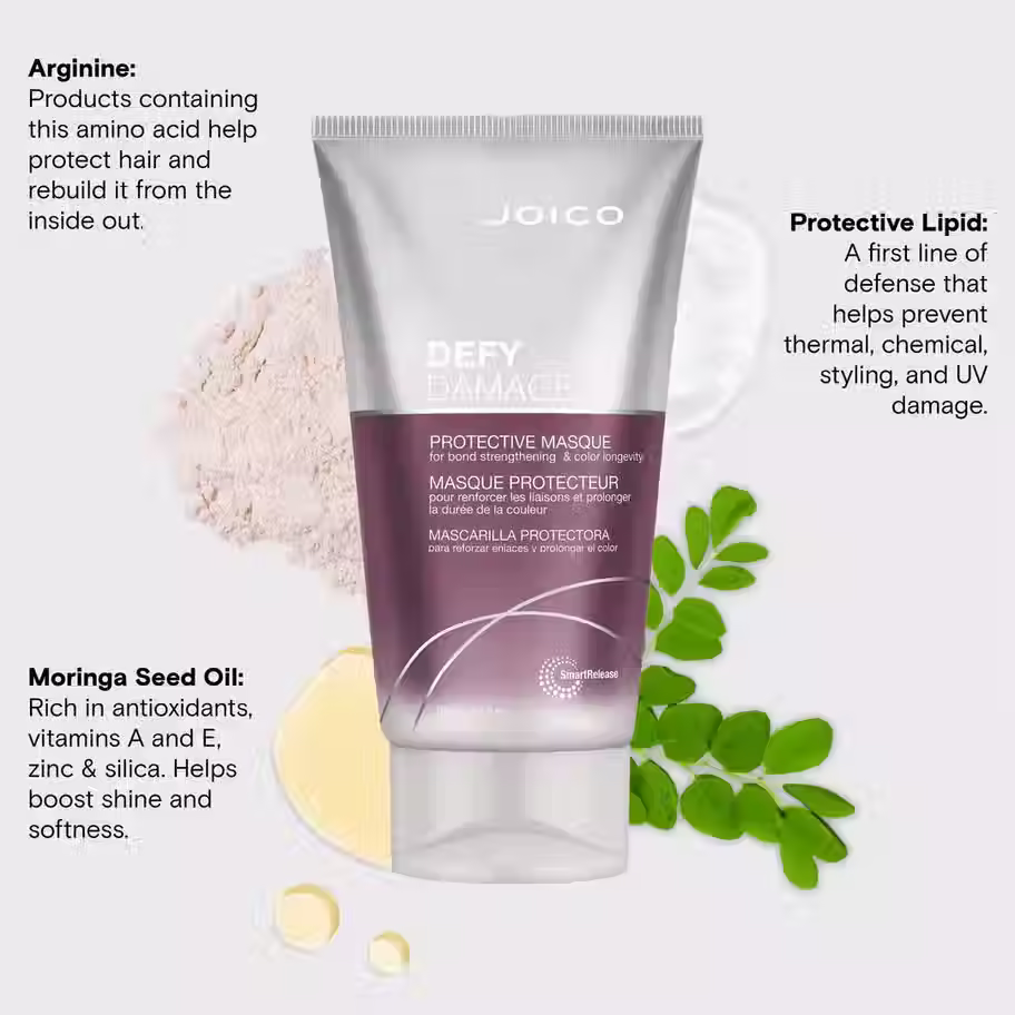 Joico Defy Damage Protective Masque is an intensive damage prevention masque to help replenish strength and moisture balance for soft, healthy-looking hair.